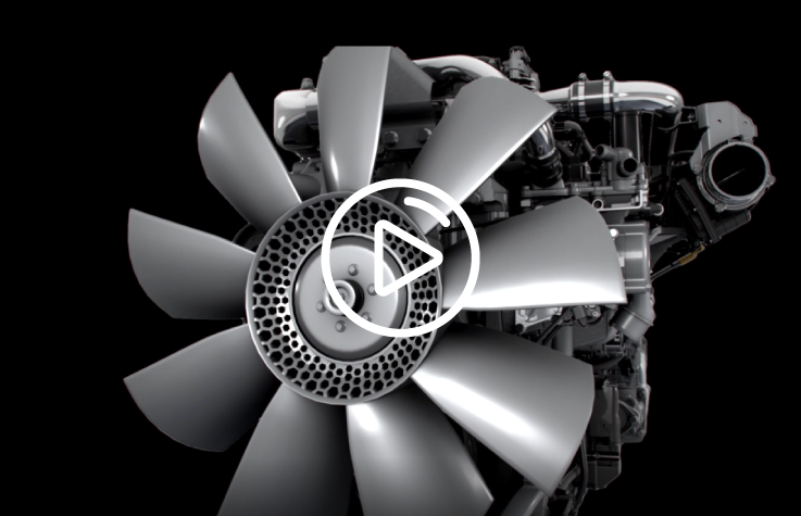 •El tren de engranajes trasero y el bloque de cilindros de hierro fundido estriado cuenta con conductos integrados de aceite y anticongelante para minimizar la temperatura, la vibración y el sonido.